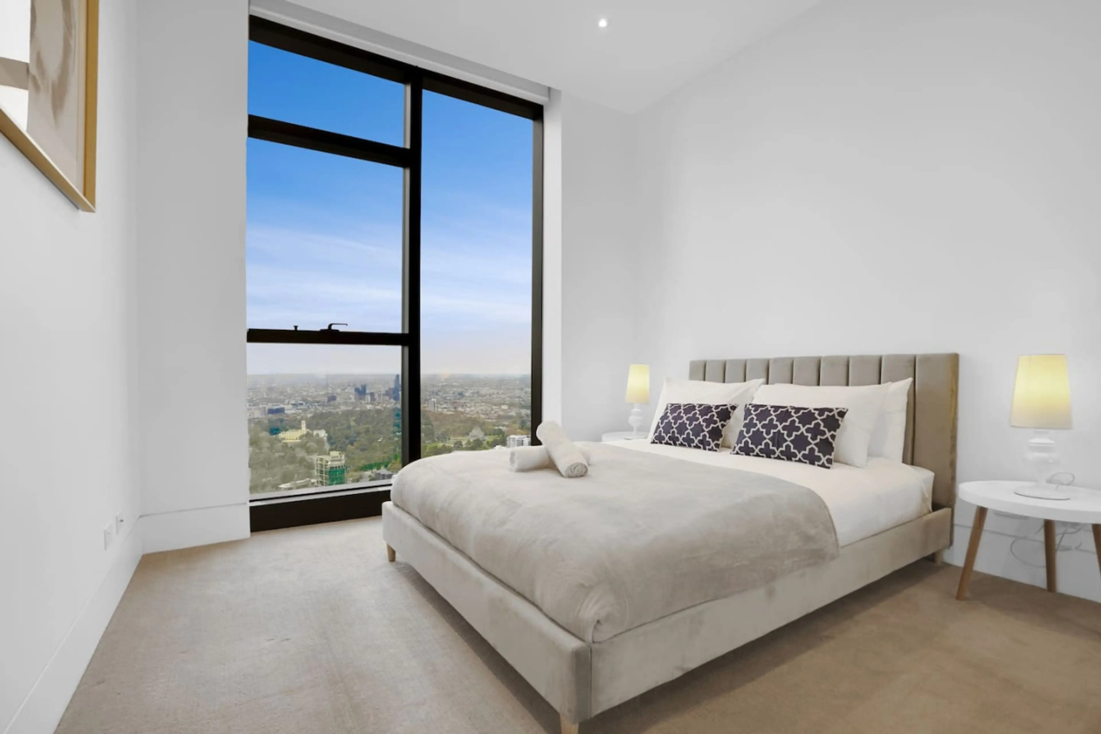 Welcome to Prima Tower, also know as Prima Pearl, one of Melbourne's most luxury and prestigious residential buildings! Nestled on the 60th floor, this sky-high apartment offers breathtaking park and bay views through floor-to-ceiling windows. Enjoy the scenery from living room or from the comfort o...